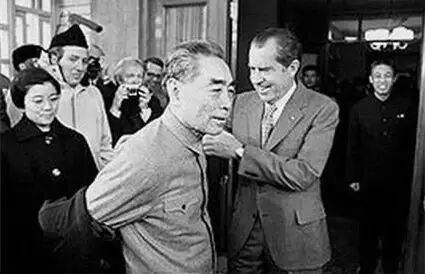 2、美国前总统尼克松亲自为周总理脱大衣,时间:1972年2月22日上午,地点:北京钓鱼台国宾馆。
