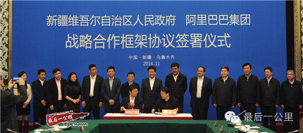 会上,阿里巴巴集团总裁金建杭代表阿里巴巴集团和自治区党委常委、自治区常务副主席黄卫签署了战略合作框架协议。