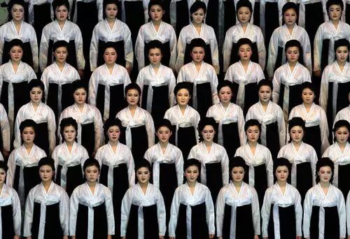 你所不知道的朝鲜白富美:中国男人娶不得出现在世界视野里的朝鲜女性,大多是文艺表演者。她们无不肤白貌美。2012年4月16日,平壤一室内体育馆内,庆祝金日成百年诞辰的合唱团表演者在表演前的等待。她们穿着朝鲜的传统服装,似乎无一例外地有着一张“鹅蛋脸”。