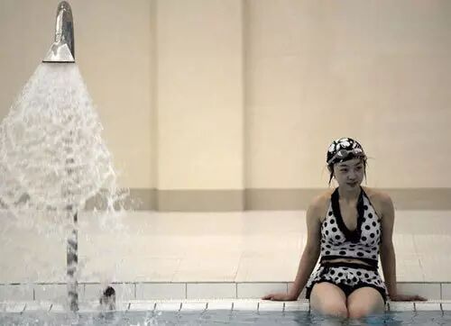 朝鲜平壤,金日成大学的学生在游泳馆内嬉戏
