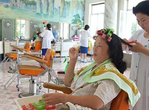 在元山美容院做头发的朝鲜富有阶层。