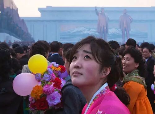 据媒体透露,朝鲜人最喜欢去的人气购物场所是与朝鲜相邻的中国丹东。在丹东的酒店和百货商店中随处可见朝鲜人,并且还购买高级轿车。图为2012年4月13日,在已故领导人金日成和金正日塑像的揭幕式上,一个朝鲜女人抬头看头顶飘过的气球。
