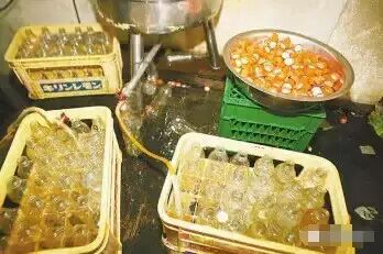 喝这些就是慢性自杀阿!!!难怪现在那么多的人得癌症,黑心商人在用自来水和化学香精在制作毒饮料!
