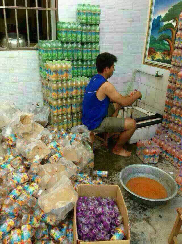 广东揭阳揭东龙尾隐藏一家大型假冒饮料加工窝点,这个窝点白天黑夜生产,每天都有大量假冒饮料被货车运走,看到这么多用地下水勾兑色素生产的劣质饮料流入市场很让人担心。赶紧扩散!免得你小孩吃了致癌!!