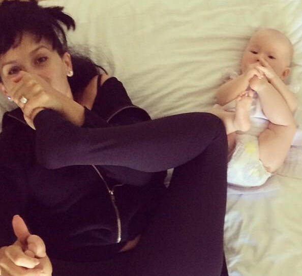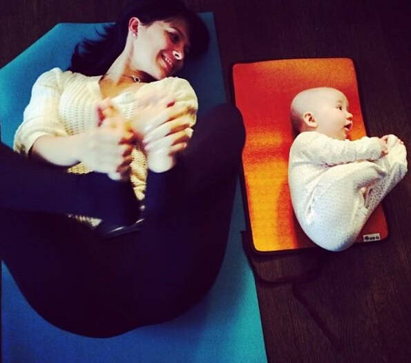 另一位辣妈Hilaria Baldwin也上传了自己与女儿共同练习瑜伽(搞笑版)的照片。面对孩子的完美100分动作,妈妈可是拼了命地在学习呢。