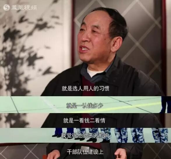 徐才厚我是比较熟悉的,用土话说我是直接伺候他的,我是给他写材料,以这种方式为他服务的人员,他的那种用人习惯,就是选人用人的习惯,就是一认钱多少,二是看关系远近,三是感情。我觉得他的恶劣影响就是这个选人用人上,干部队伍建设上。