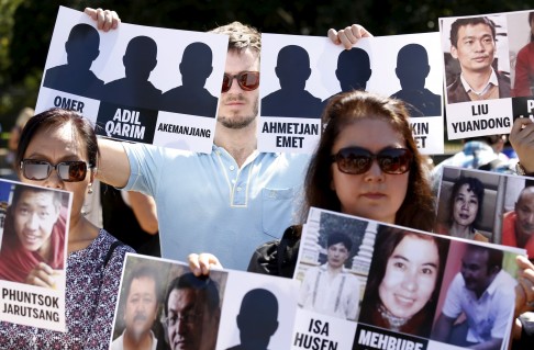 Tibetan, Chinese, Uighur and American activists rally outside the White House in Washington on Wednesday. The group is calling on US President Barack Obama to publicly call on Xi Jinping to halt the crackdown on Tibetans and Uighurs, and civil society in China. Photo: Reuters